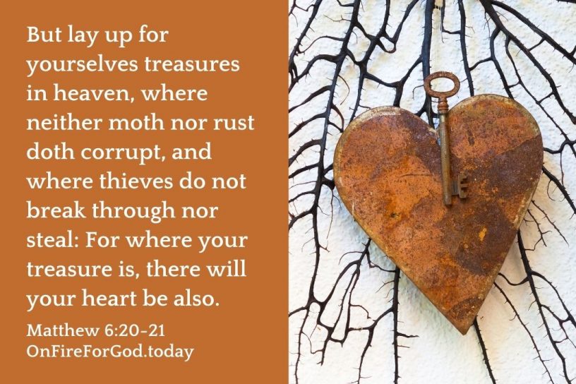 20 But lay up for yourselves treasures in heaven, where neither moth nor rust doth corrupt, and where thieves do not break through nor steal:
